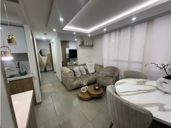 cod 9571558  Venta apto en Vegas de Confandi, cerca de todo, muy bien ubicado tanto respecto del sol - MUY FRESCO - como en ubicación para trasladarse en la ciudad.  A una cuadra pasa el alimentador del MIO, cerca de supermercados, centros hospitalarios, centros comerciales, colegios.  Queda en estrato 2 por lo que se beneficia de impuestos económicos y servicios publicos subsidiados.  El apto esta en nivel 4 sólo escaleras, tiene dos habitaciones con closet, la principal con baño, baño social, cocina abierta a zona social sala comedor y estudio.  La zona de estudio puede convertirse en habitación 3.  Conozca esta hermosa propiedad terminada con los mejores materiales y diseño.  Conozca más 3196793900